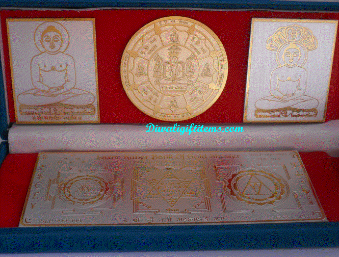 Mahavir Parshwanath Siddh Chakra with Shree Kuber & Kanakdhara Yantra on white metal, Engraved & Silver Gold  finishing, fitted in Velvate Box, available ready stock